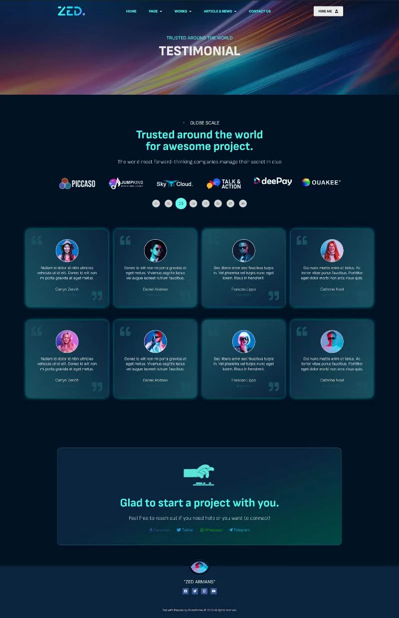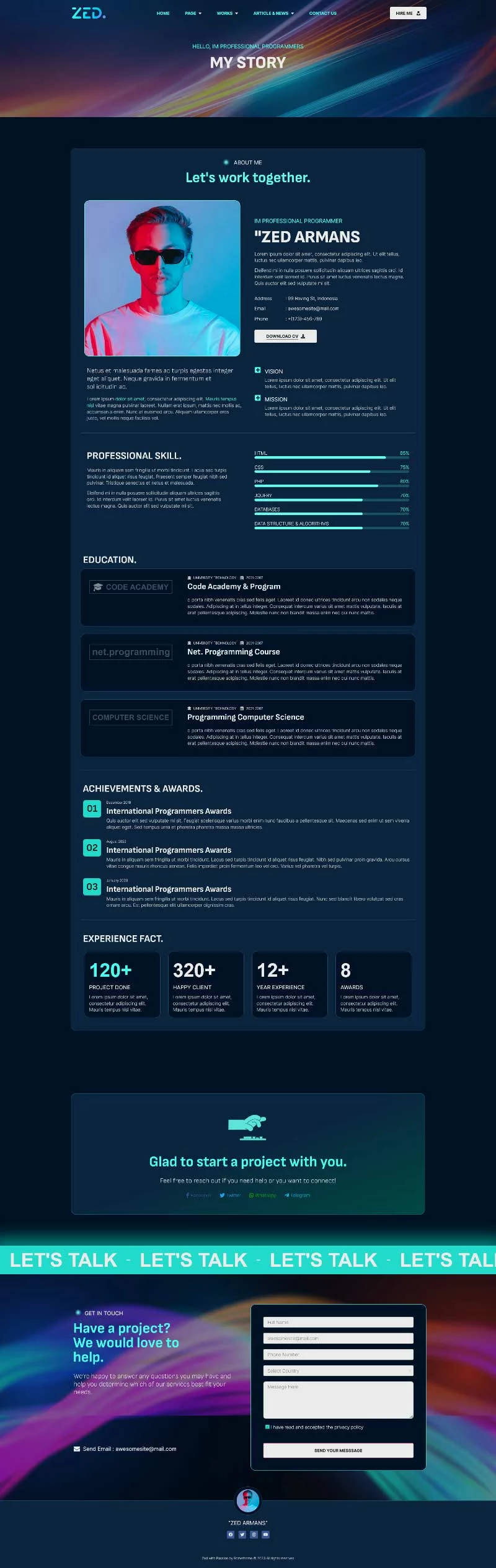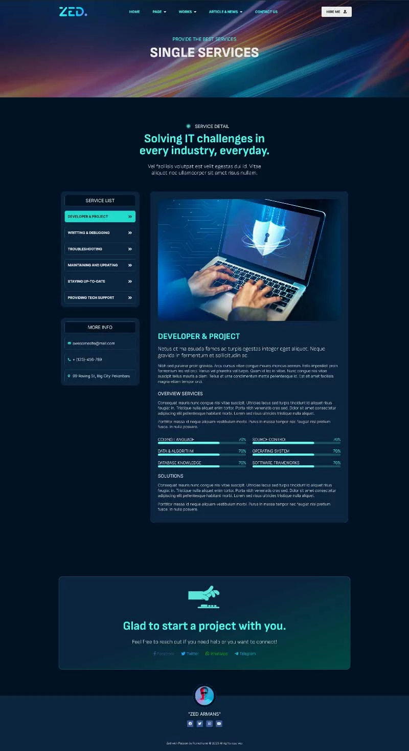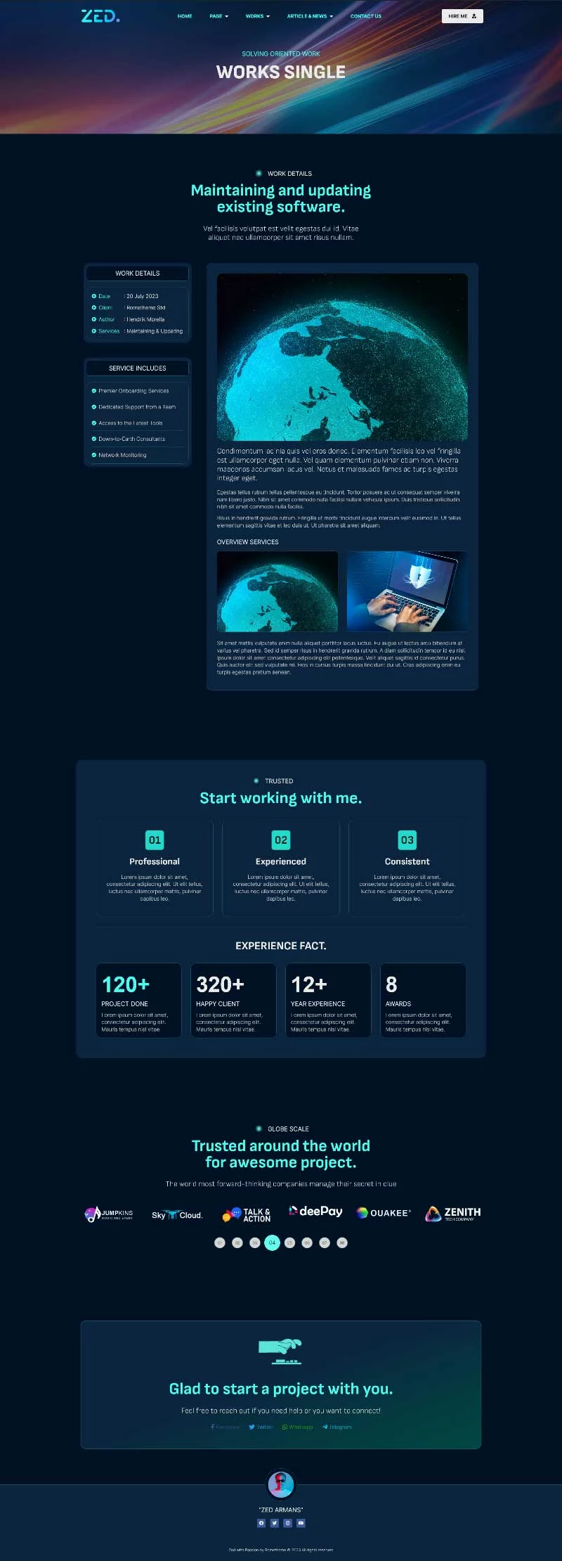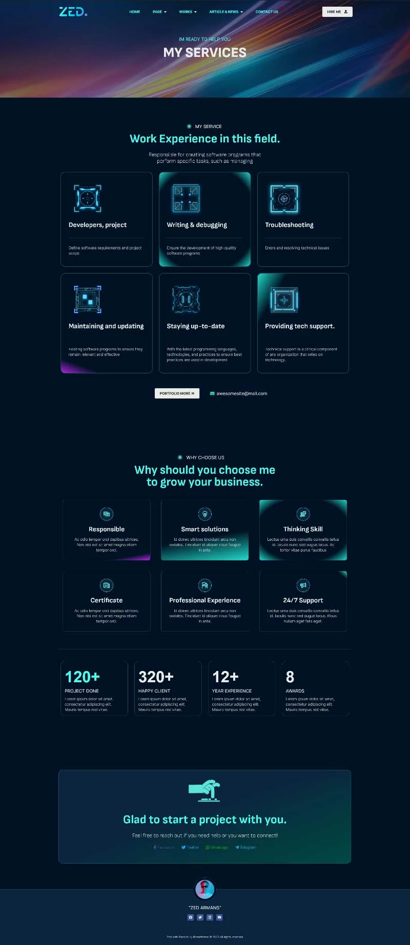 کیت قالب المنتور رزومه و نمونه کار برنامه نویس Zed شامل مجموعهای ایدهآل از قالبها برای برنامهنویسان، فناوری، شخصی، نمونه کار، خدمات و IT است. این کیت طراحی مدرن و خلاقانهای دارد و با طرحبندی کاملاً پاسخگو، نصب آسان و امکان سفارشیسازی بسیار ساده بدون نیاز به یک خط کدنویسی، ارائه میشود.