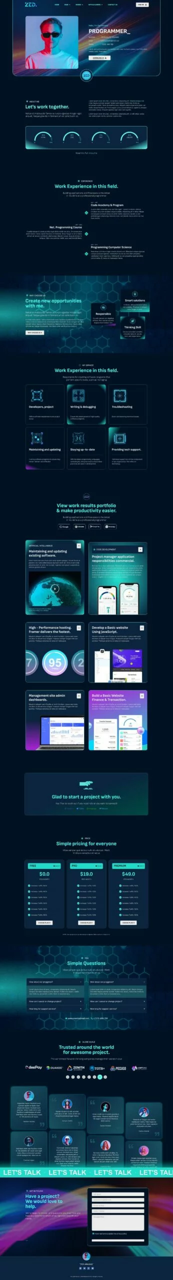 توضیحات بیشتر درباره کیت قالب المنتور رزومه و نمونه کار برنامه نویس Zed