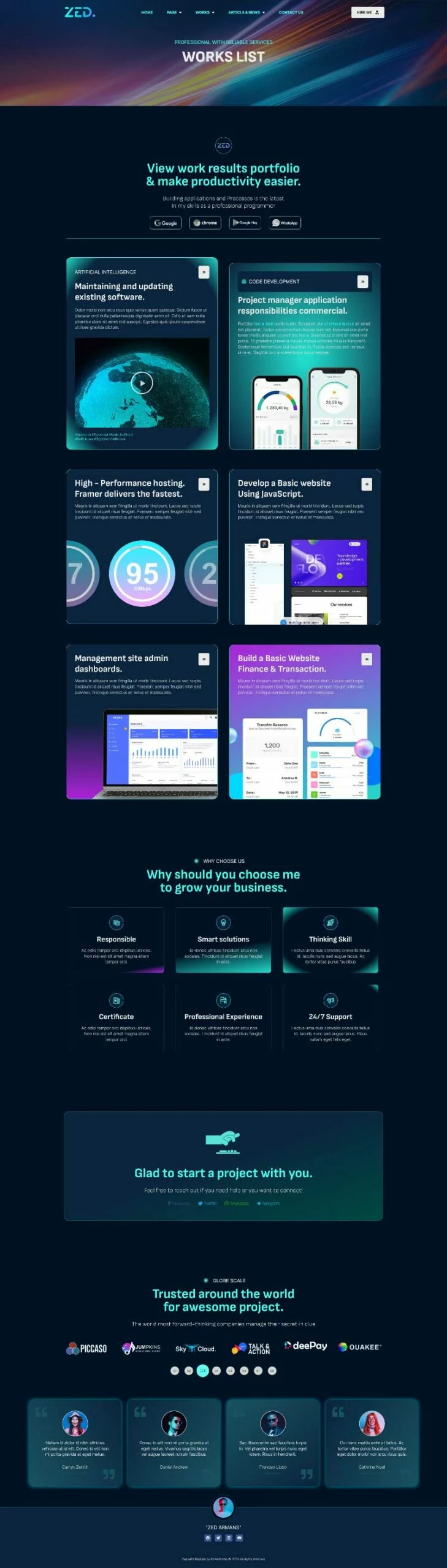 کیت قالب المنتور رزومه و نمونه کار برنامه نویس Zed برای افراد فعال در حوزه فناوری اطلاعات است که به آنها امکان میدهد به راحتی و بدون نیاز به دانش کدنویسی، رزومه و نمونه کارهای خود را به صورت آنلاین به نمایش بگذارند. این کیت با طراحی مدرن و کاربرپسند، به شما کمک میکند تا حضور آنلاین حرفهای و جذابی داشته باشید و مشتریان و کارفرمایان را جذب کنید. قالبهای متنوع و قابلیت سفارشیسازی آسان این کیت، به شما اجازه میدهد تا وبسایتی منحصربهفرد و متناسب با نیازهای خود ایجاد کنید.