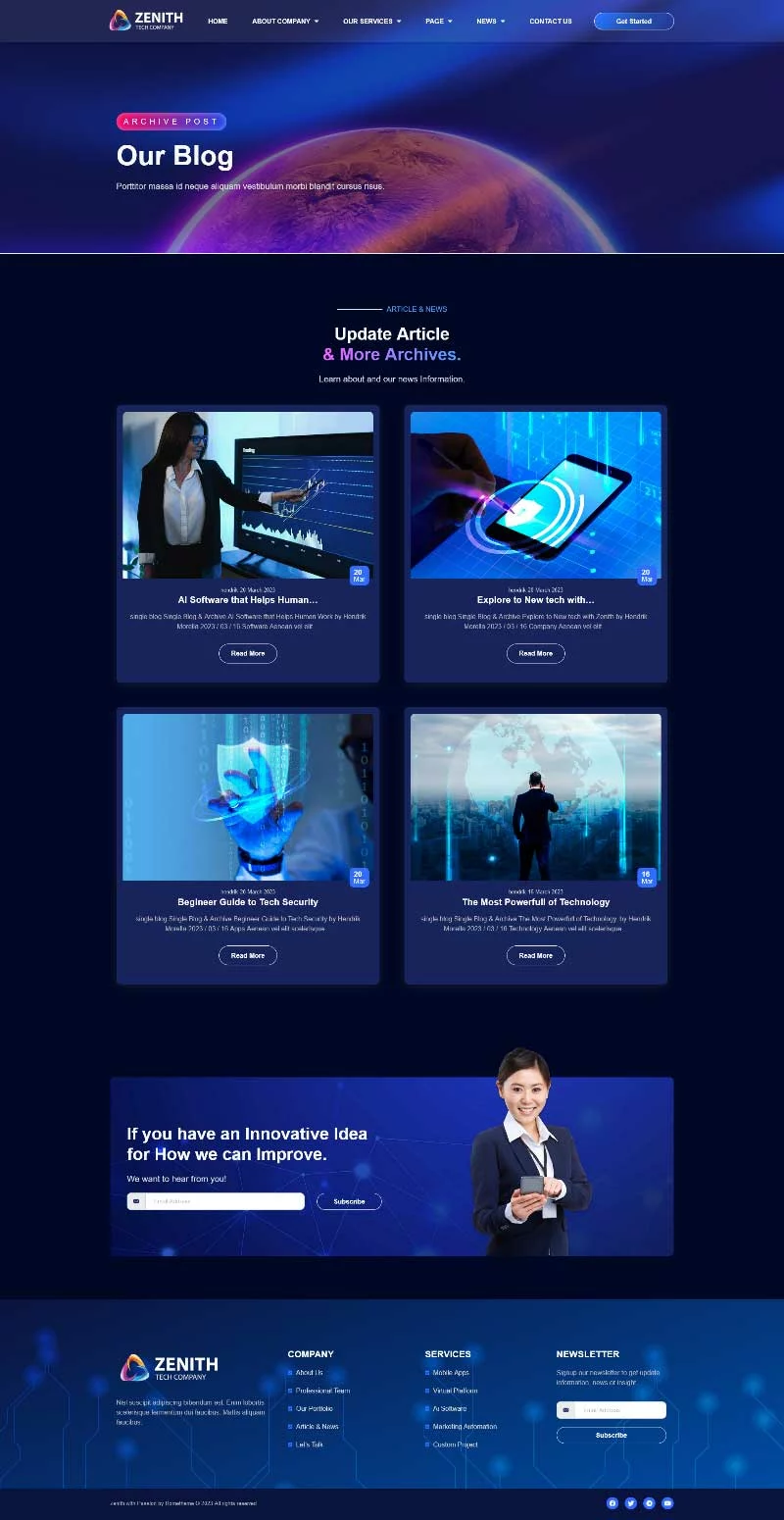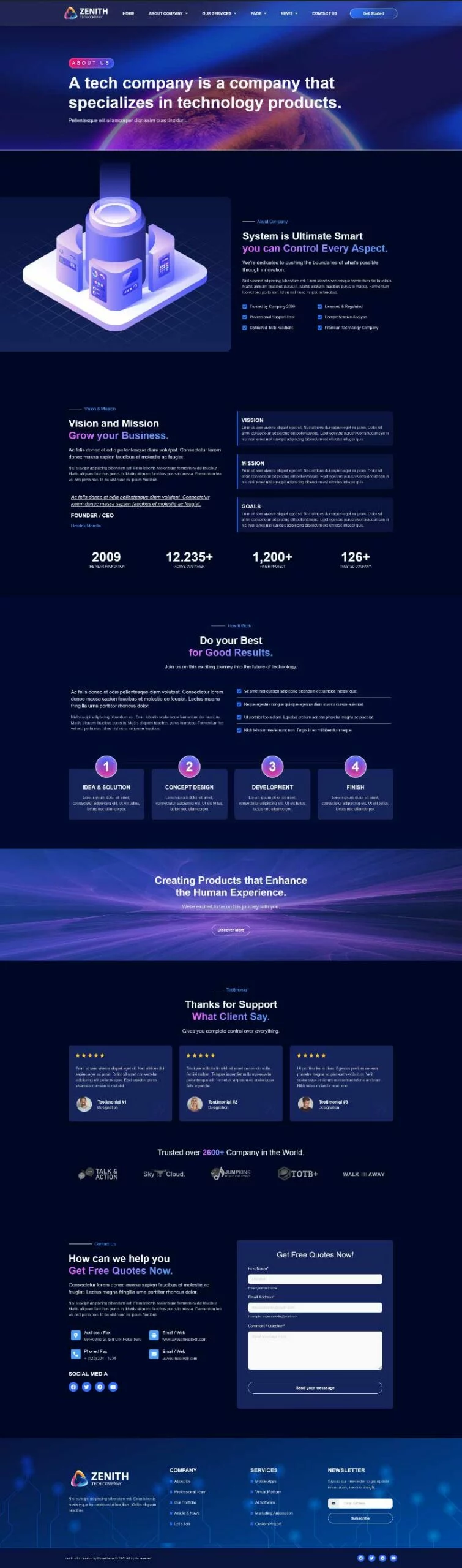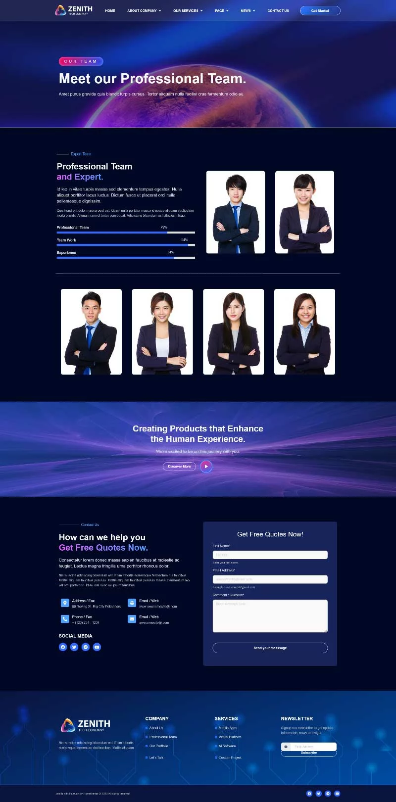 کیت قالب المنتور شرکت فناوری Zenith برای شرکتهای IT طراحی شده است. این کیت شامل بیش از 15 قالب پیشساخته با طراحی مدرن، خلاقانه و کاملاً ریسپانسیو است.