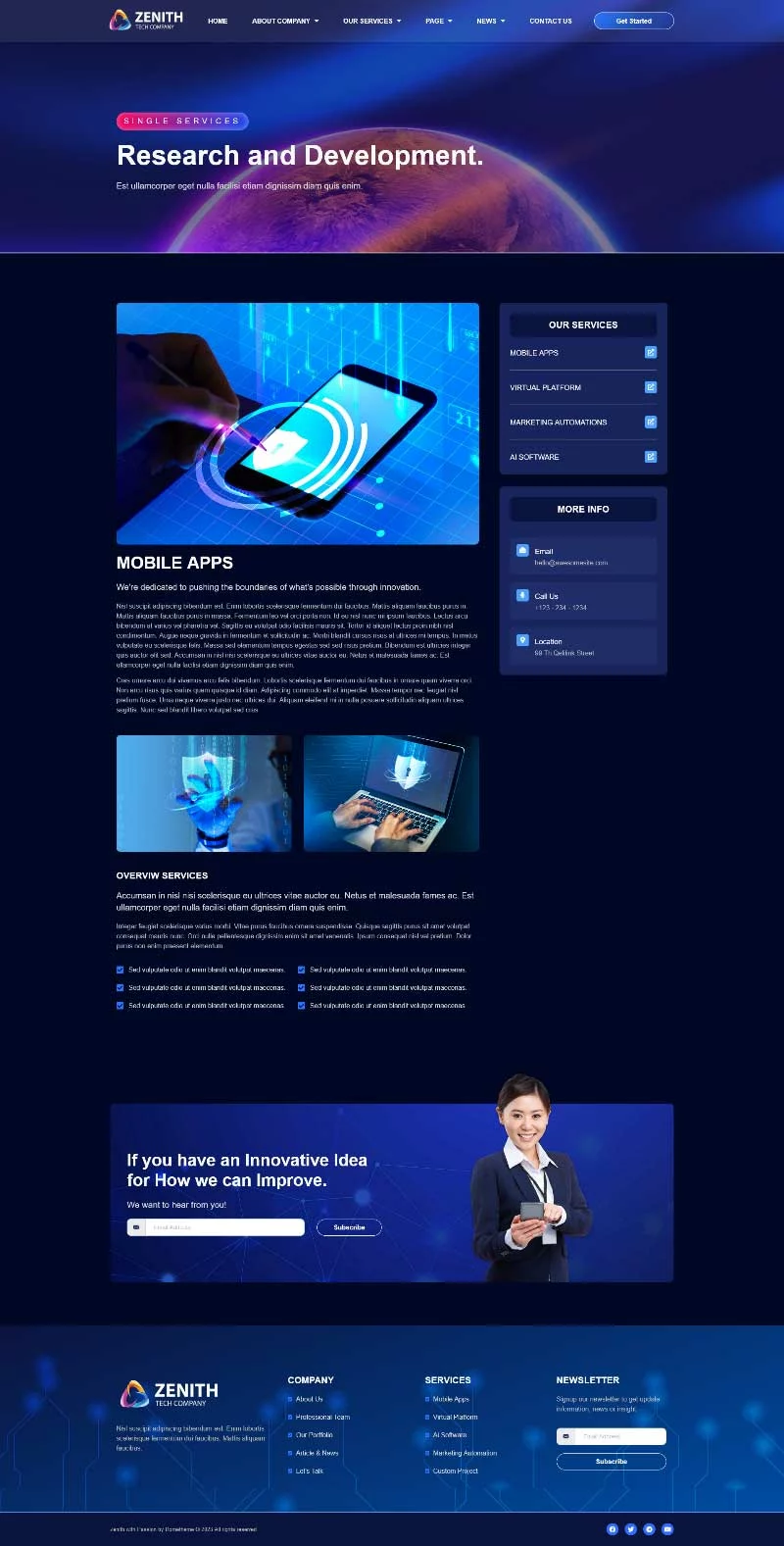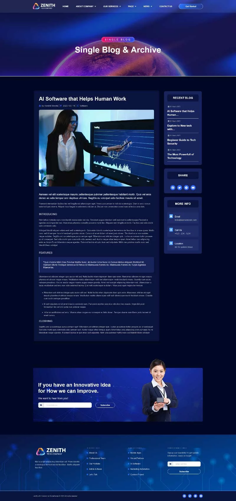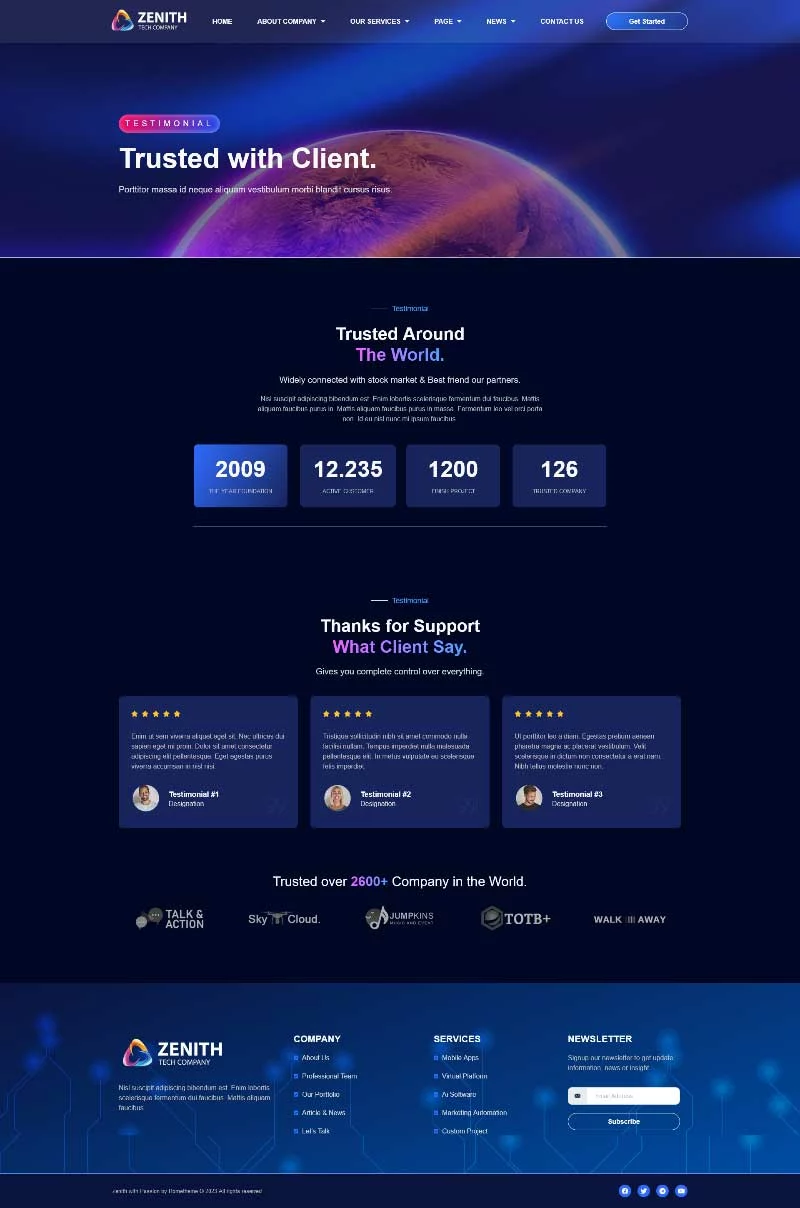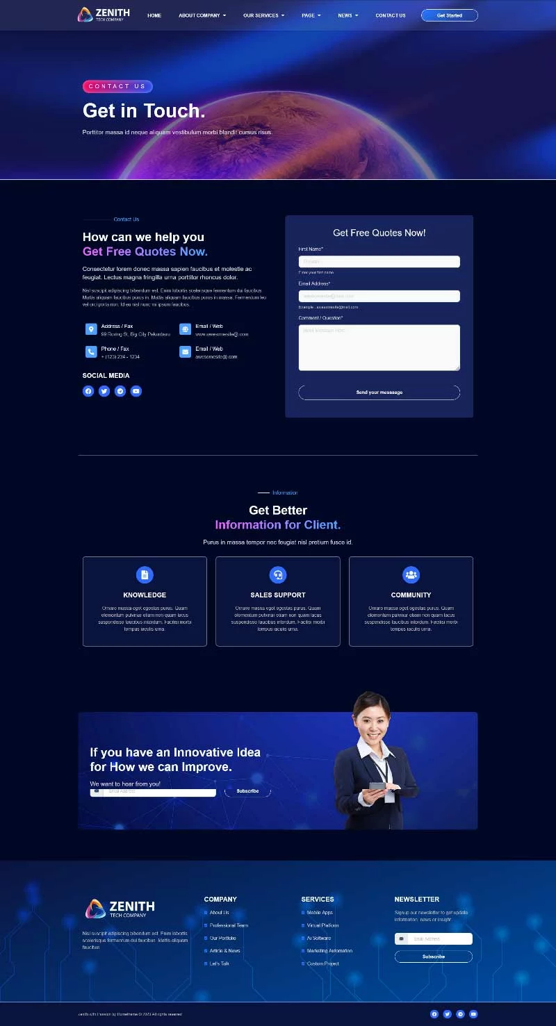 کیت قالب المنتور شرکت فناوری Zenith برای شرکتهای IT طراحی شده است. این کیت شامل بیش از 15 قالب پیشساخته با طراحی مدرن، خلاقانه و کاملاً ریسپانسیو است.