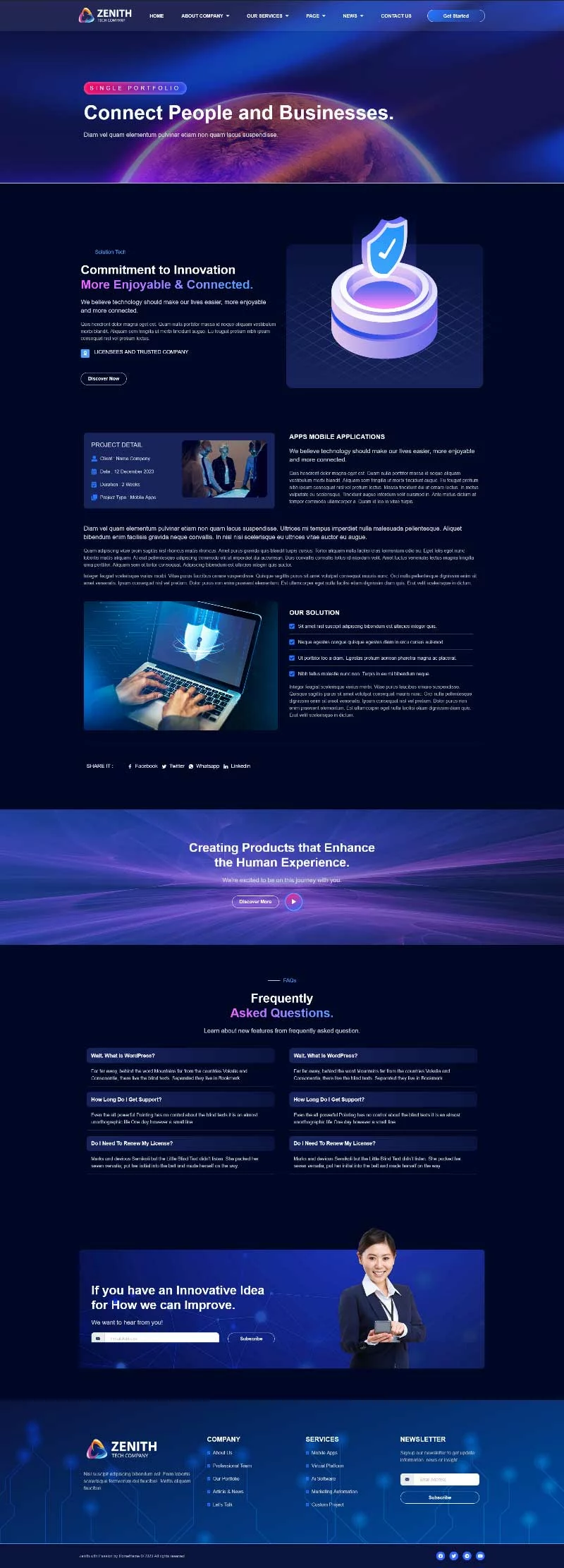 کیت قالب المنتور شرکت فناوری Zenith برای استفاده با افزونه صفحهساز المنتور بهینه شده است و میتوان آن را با اکثر تمهایی که از المنتور پشتیبانی میکنند استفاده کرد. این کیت به شما اجازه میدهد که به راحتی و بدون نیاز به دانش کدنویسی، وبسایتی مدرن و خلاقانه برای شرکت فناوری و IT خود ایجاد کنید. طراحی ریسپانسیو و گرافیک با وضوح بالا اطمینان میدهد که وبسایت شما در همه دستگاهها به خوبی نمایش داده میشود.