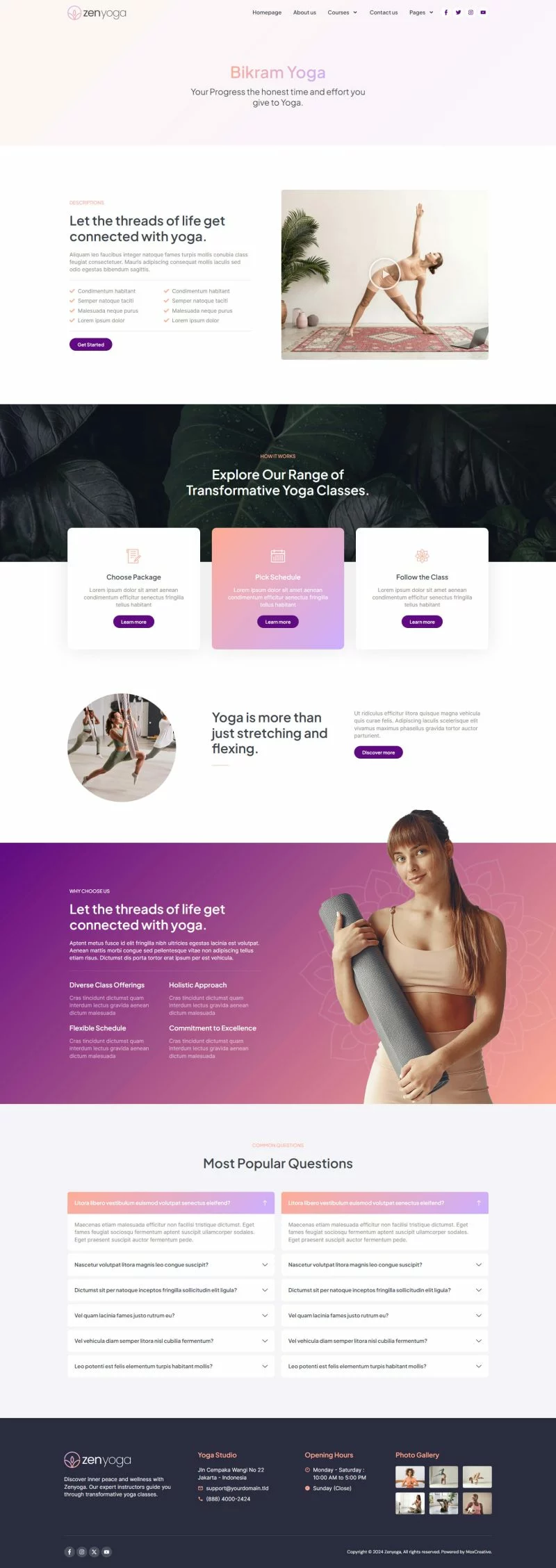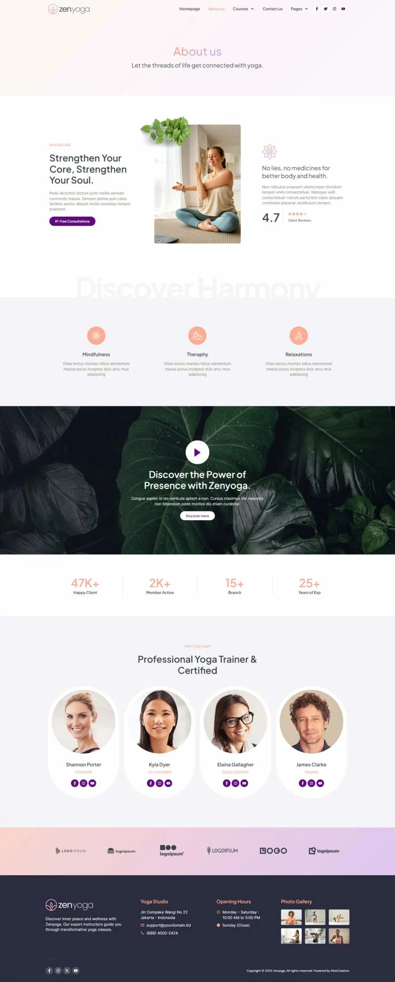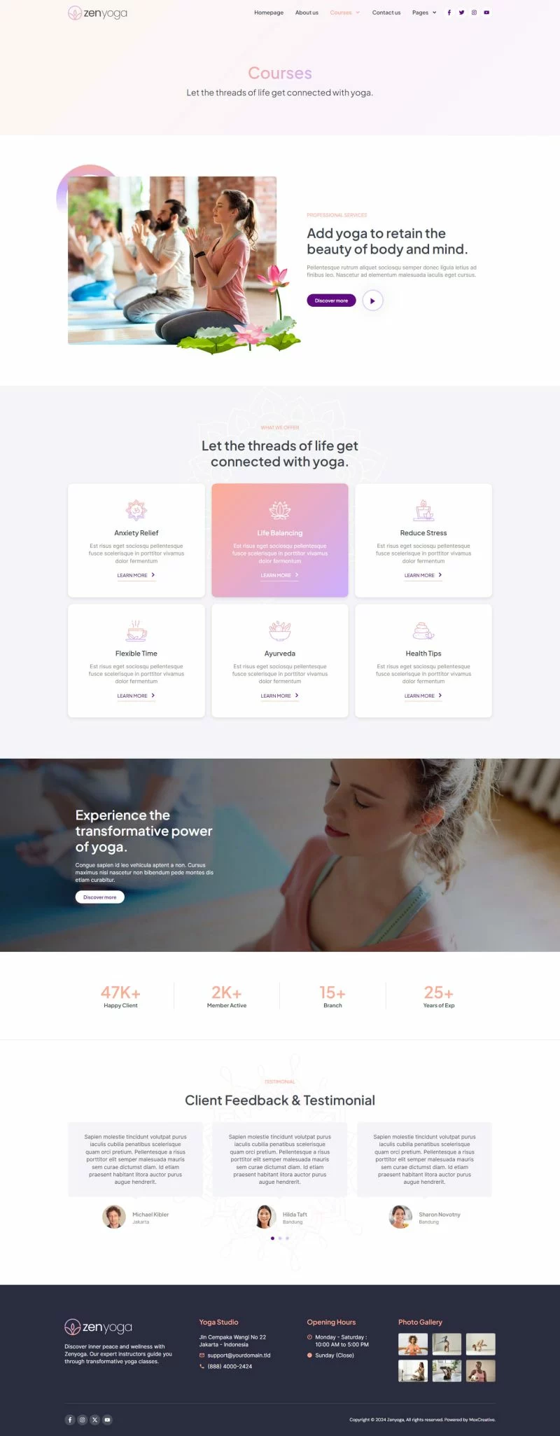 کیت قالب المنتور یوگا و مدیتیشن ZenYoga دارای بیش از 12 قالب از پیش ساخته شده با طراحی زیبا و سبک مدرن است. این کیت قالب المنتور مناسب استودیوهای یوگا، گوروهای یوگا، معلمان یوگا، مدیتیشن، تناسب اندام و سبک زندگی و هر نوع کسب و کار یا خدمات مرتبط با یوگا است.