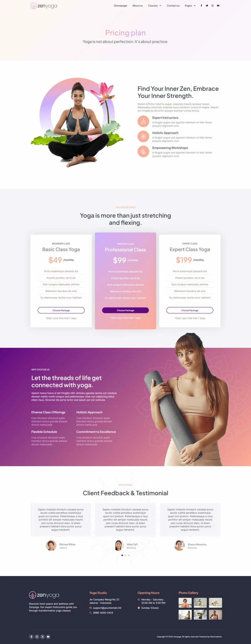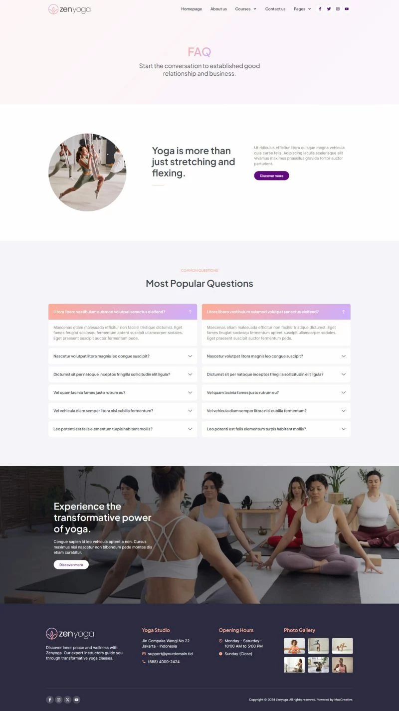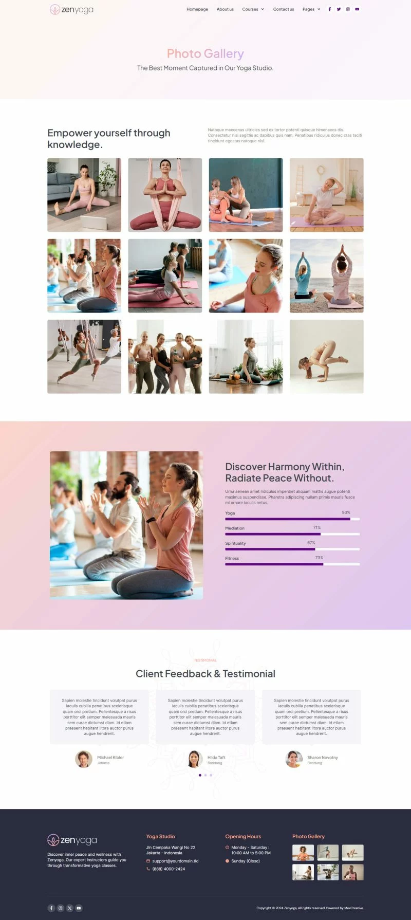 کیت قالب المنتور یوگا و مدیتیشن ZenYoga دارای بیش از 12 قالب از پیش ساخته شده با طراحی زیبا و سبک مدرن است. این کیت قالب المنتور مناسب استودیوهای یوگا، گوروهای یوگا، معلمان یوگا، مدیتیشن، تناسب اندام و سبک زندگی و هر نوع کسب و کار یا خدمات مرتبط با یوگا است.