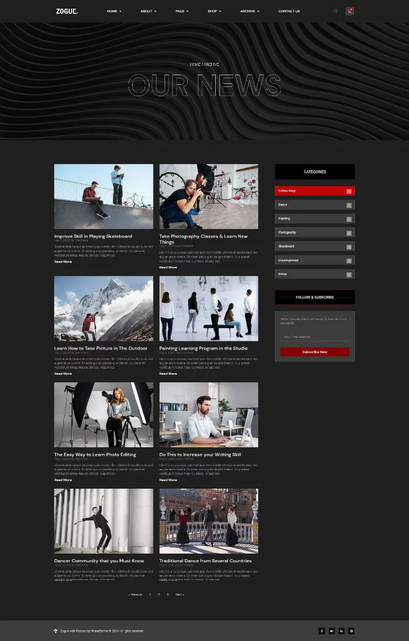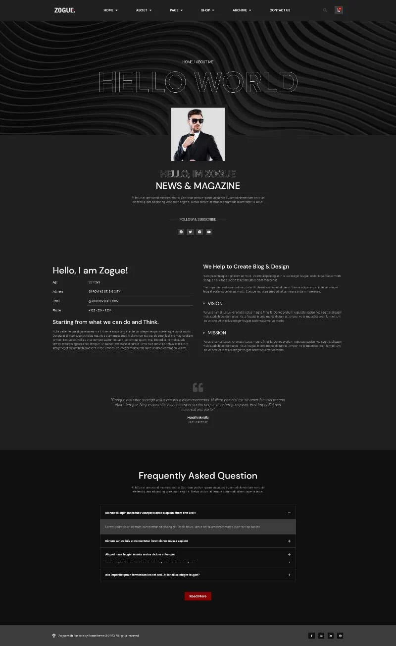 کیت قالب المنتور وبلاگ و مجله Zogue شامل انتخابی ایدهآل از قالبها برای وبلاگ، اخبار، مجله، بلاگر و روزنامه است. این کیت با طراحی مدرن و خلاقانه، دارای چیدمانی 100% واکنشگرا، نصب آسان و بسیار قابل سفارشیسازی است. با استفاده از المنتور، شما نیازی به یک خط کدنویسی ندارید!