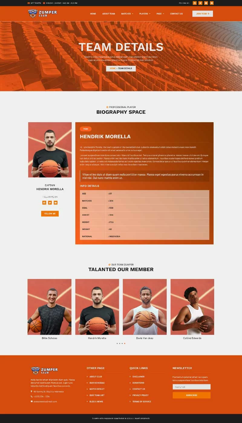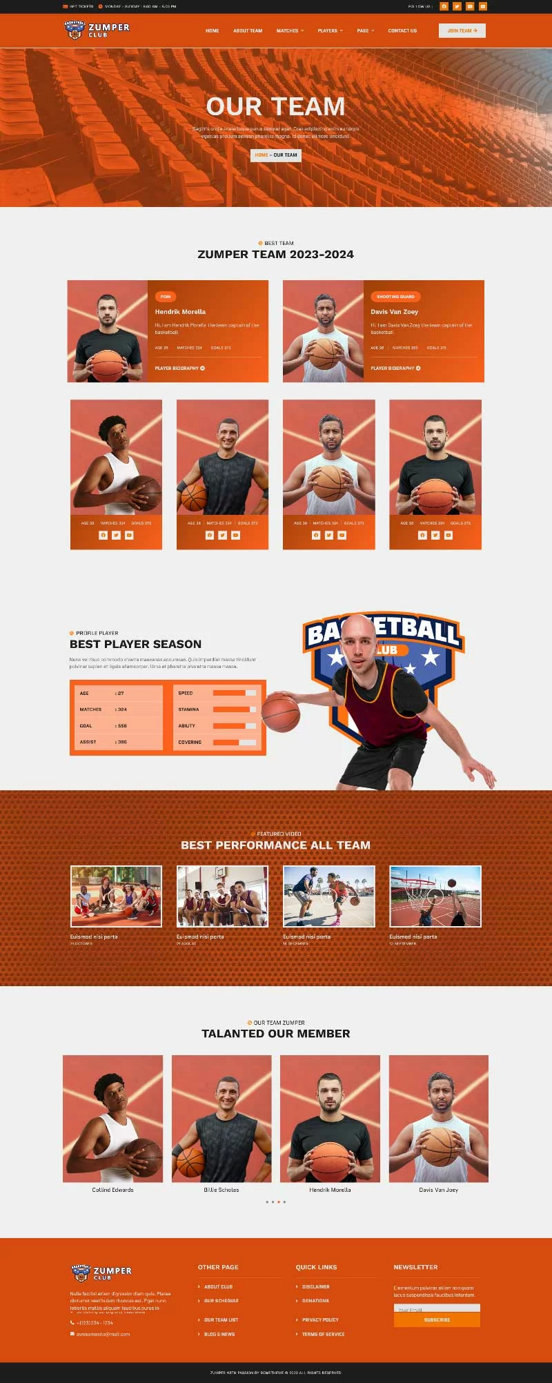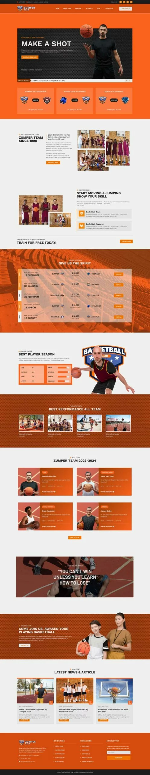کیت قالب المنتور آکادمی بسکتبال Zumper یک انتخاب ایدهآل از قالبها برای ورزشکاران، تیم، لیگ و روزنامه است. این کیت دارای طراحی مدرن و خلاقانه با یک طرح 100% پاسخگو، نصب آسان و بسیار قابل سفارشیسازی است زیرا از المنتور استفاده میکند و نیازی به حتی یک خط کدنویسی ندارد!