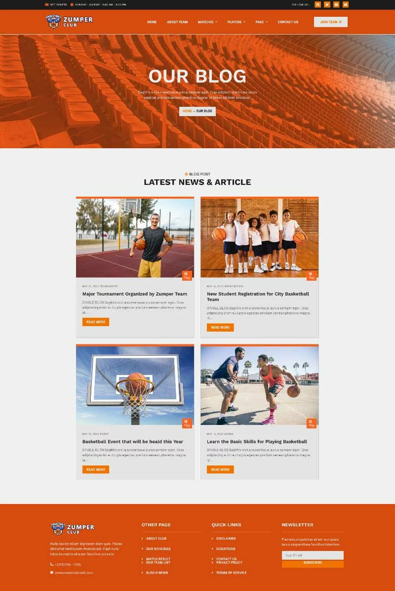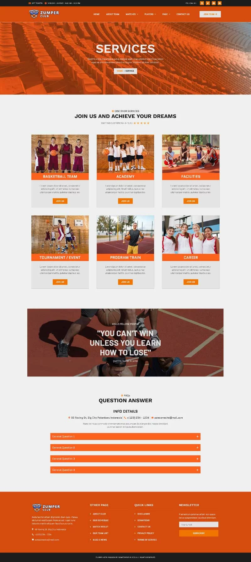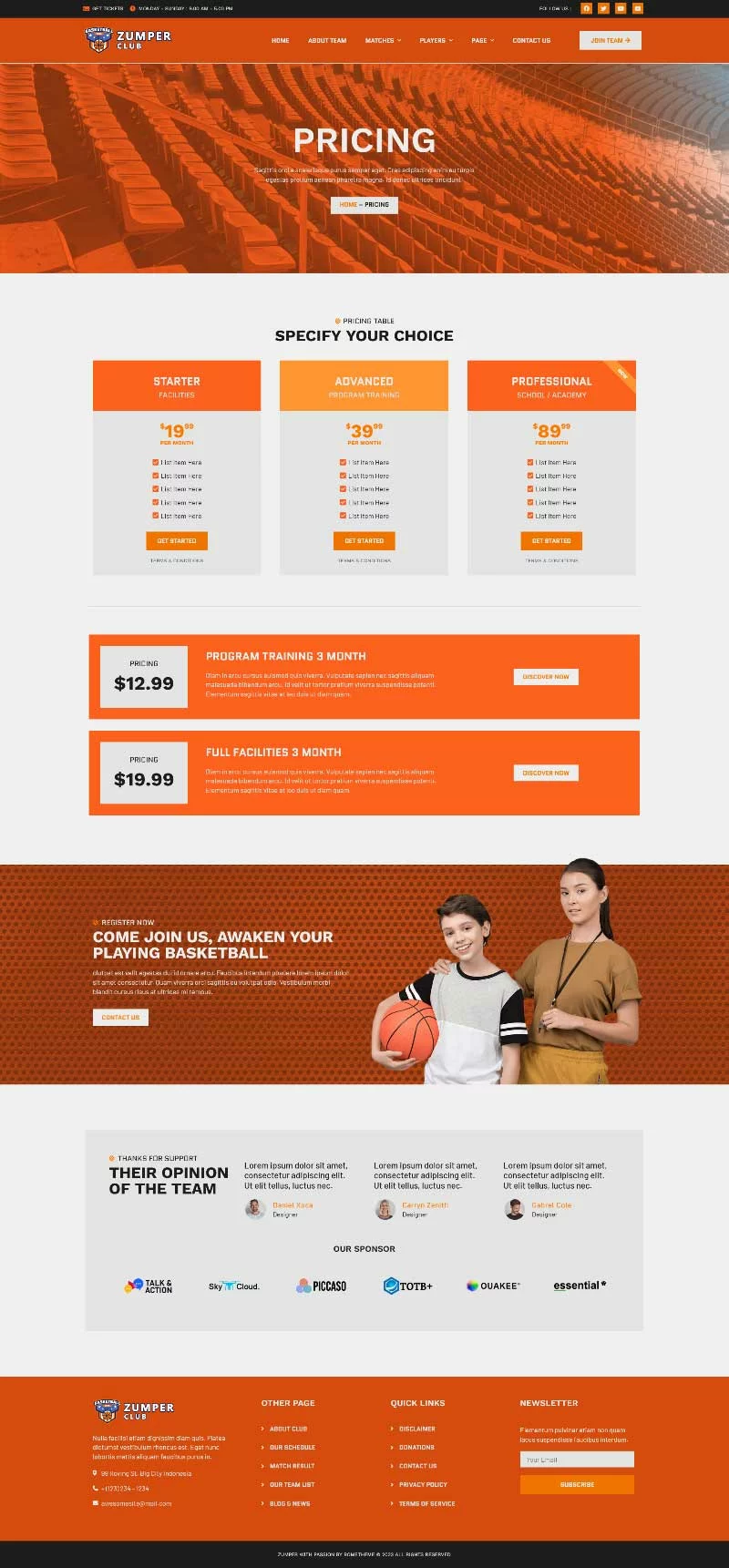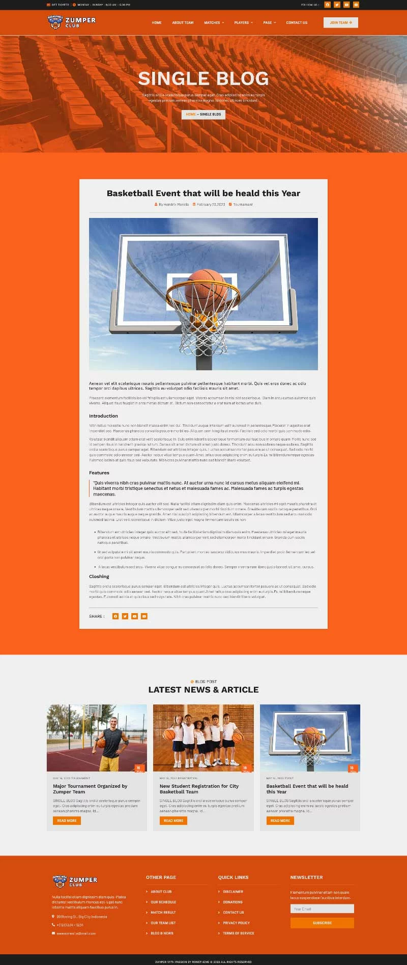 کیت قالب المنتور آکادمی بسکتبال Zumper یک انتخاب ایدهآل از قالبها برای ورزشکاران، تیم، لیگ و روزنامه است. این کیت دارای طراحی مدرن و خلاقانه با یک طرح 100% پاسخگو، نصب آسان و بسیار قابل سفارشیسازی است زیرا از المنتور استفاده میکند و نیازی به حتی یک خط کدنویسی ندارد!